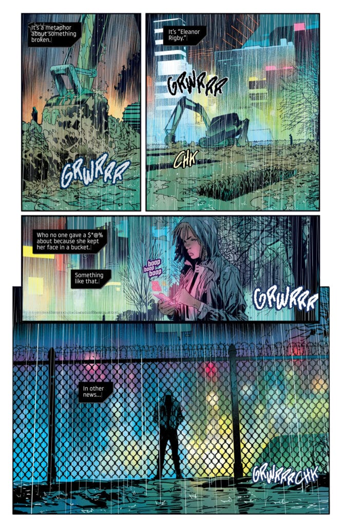 Now knowing he was attacked while he was not Batman makes it even more of a mystery. Why is the magistrate killing civilians besides the possibility of just removing anyone who knew affiliates at any point to vigilantes I think the plot digs deeper later on. And to make things even more interesting Bruce has lost his wealth! He is no longer the billionaire but a lowly beggar running for his life. Yes, I know your thinking “Bruce wouldn’t run.” Normally I would agree but this is a man on the mend as well as outclassed. The Magistrate has the tech on par with the Joker War equipment we saw produced.